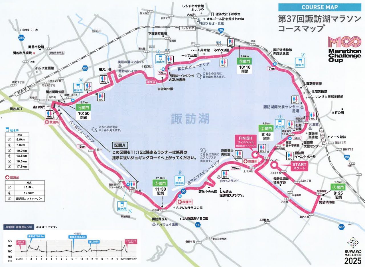 日本のほぼ中心に位置する諏訪湖を1周する平坦なコースのハーフマラソンで、