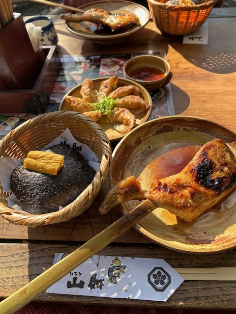いろり山賊のおにぎりと山賊焼き。