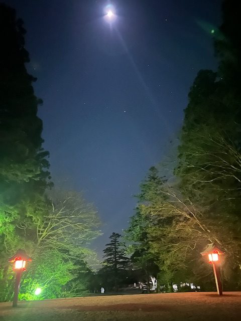 夜の参拝はライトアップされててきれいでした♫