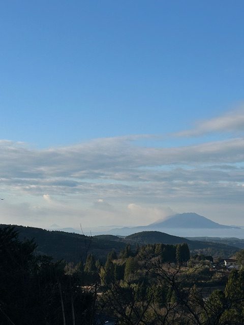 翌朝、霧島神宮から見える錦江湾。