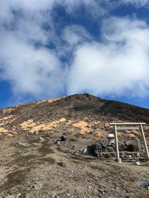 その窪地に鳥居があって山頂を守っています。