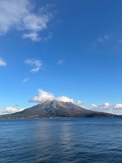 桜島の初冠雪を見て帰ります。